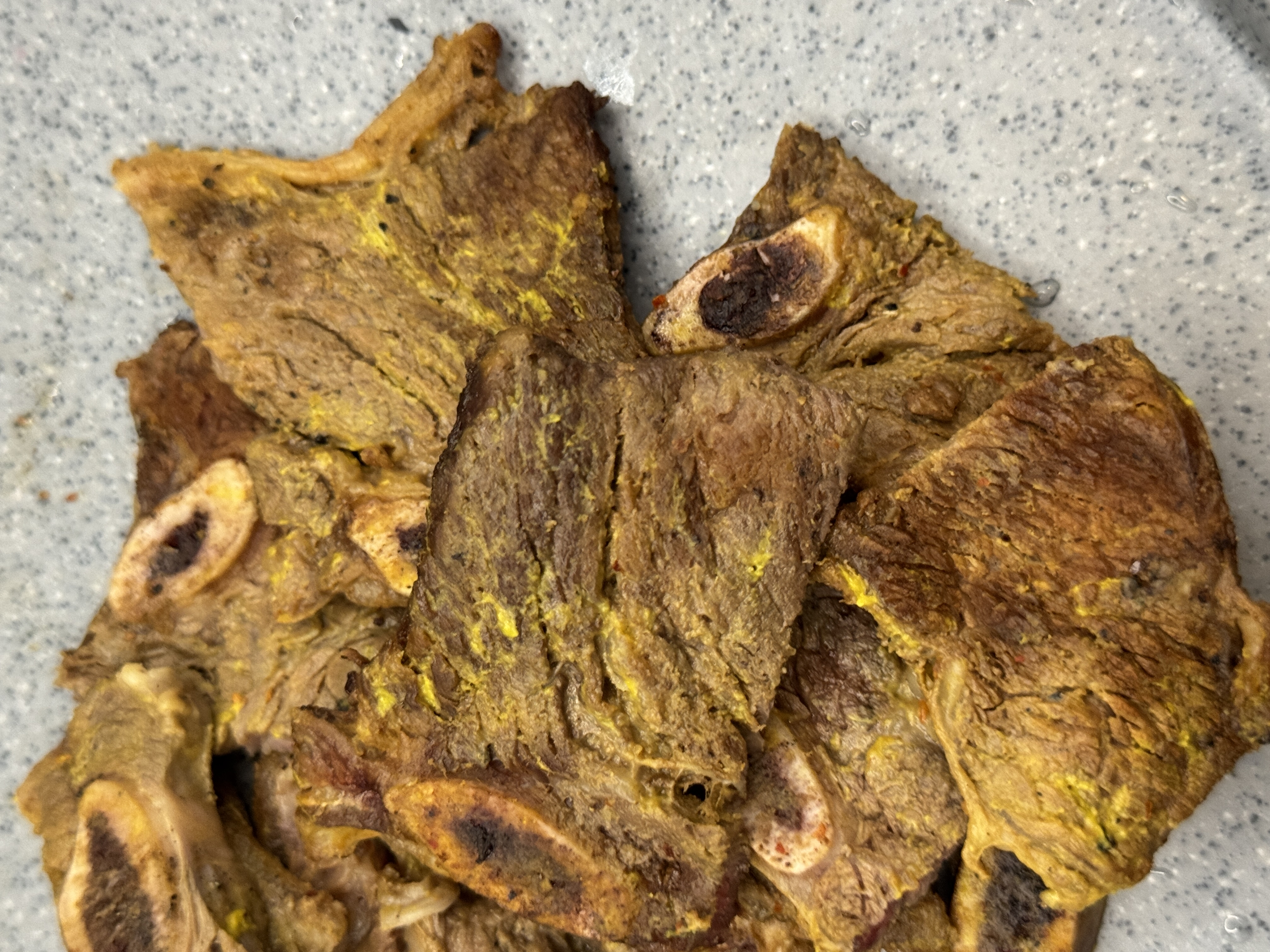 320g de costillita shortrib con marinado limon-tajin. Acompañado de salchicha, quesadilla, salchicha asada y papas costi